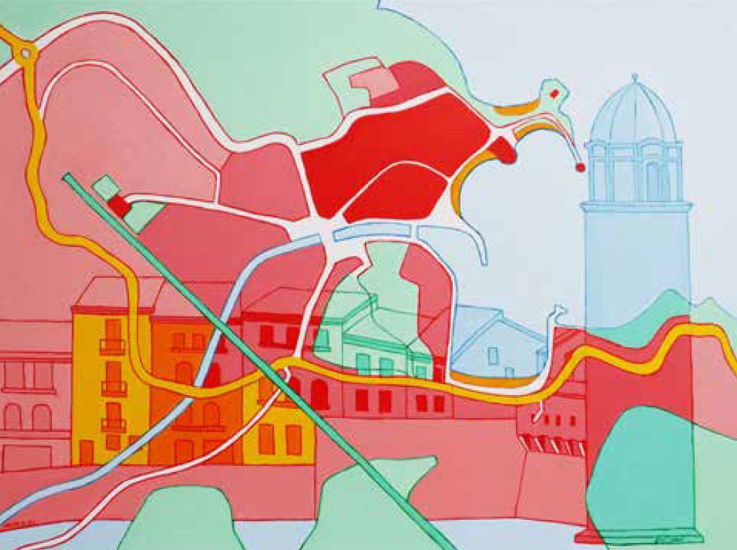 is prachtig en de grafische aard van het werk, dat sterk op een topografische kaart lijkt, is qua kleur en uitvoering bijzonder goed geslaagd. Hij combineert het herkenbare tot iets geheel nieuws – zag Google Maps er maar zo uit!