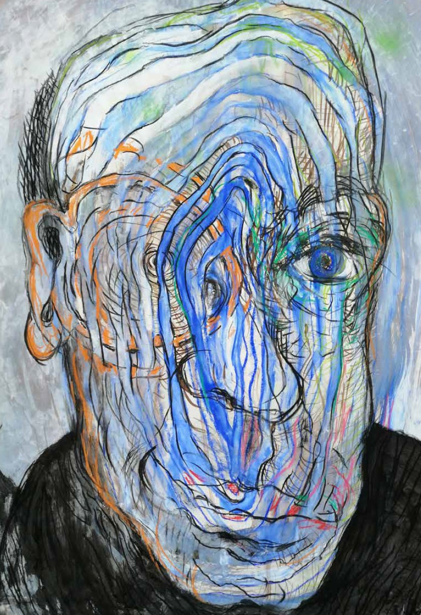 Multimediakunstenaar Wim Vonk (1950) maakt al bijna vijf jaar elke dag een gezicht, een FACE, en post dat op Facebook. Hij werkt in verschillende stijlen, met verschillende materialen waaronder houtskool, conté, acrylverf, inkt en collage. Ik spreek hem tijdens de expositie Todays Face XXL bij Studio Rob Visje, waar hij een selectie van zijn werken op groot formaat laat zien. Vonk heeft dertig jaar lesgegeven aan de Rietveld waarvan twintig jaar tekenles, de eerste vijftien jaar ‘gewoon’ modeltekenen, tekenen naar de waarneming. Zelf heeft hij ook op de Rietveld gezeten. ‘Dat was de eerste school waar ik met plezier naartoe ging. Ik was echt een Amsterdamse jongen uit de Polanenstraat in West. Ik was een moeilijk opvoedbaar kind, ik ging van de ene school naar de andere school, dat soort dingen…